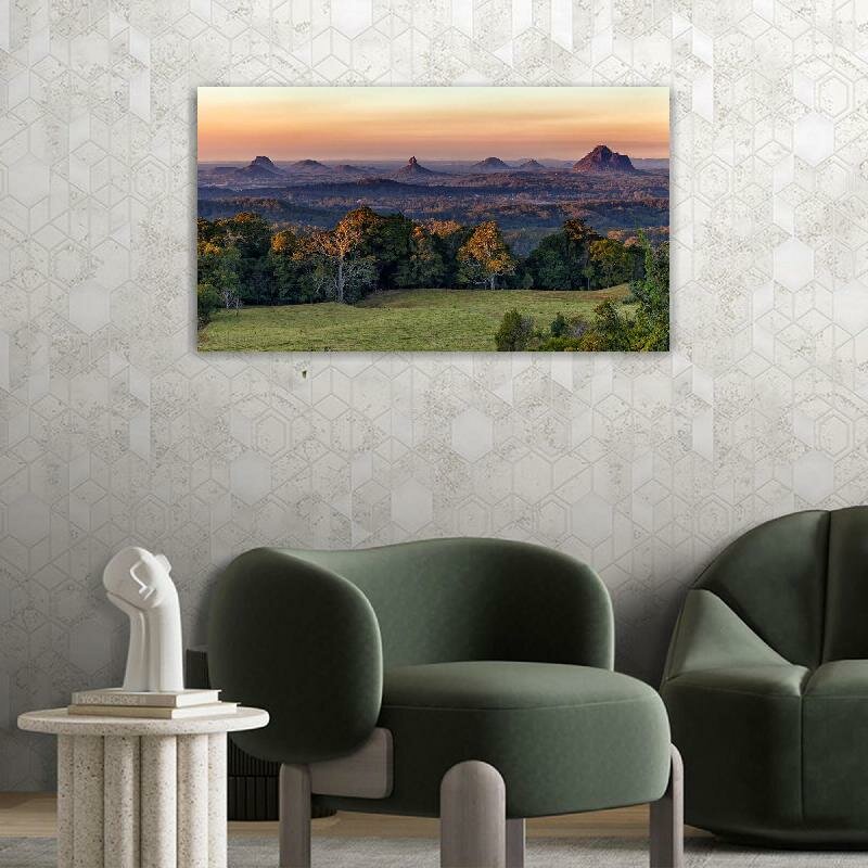 Картина на холсте 110x60 LinxOne "Горы холмы лес" интерьерная для дома / на стену / на кухню / с подрамником