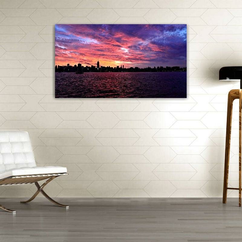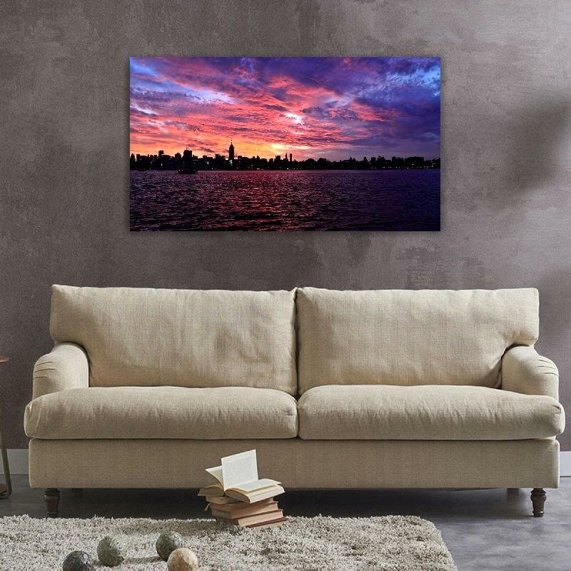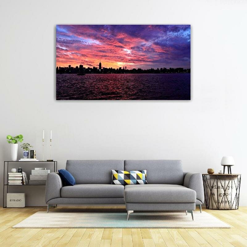 Картина на холсте 60x110 LinxOne "Небо огни океан город закат" интерьерная для дома / на стену / на кухню / с подрамником интересное: