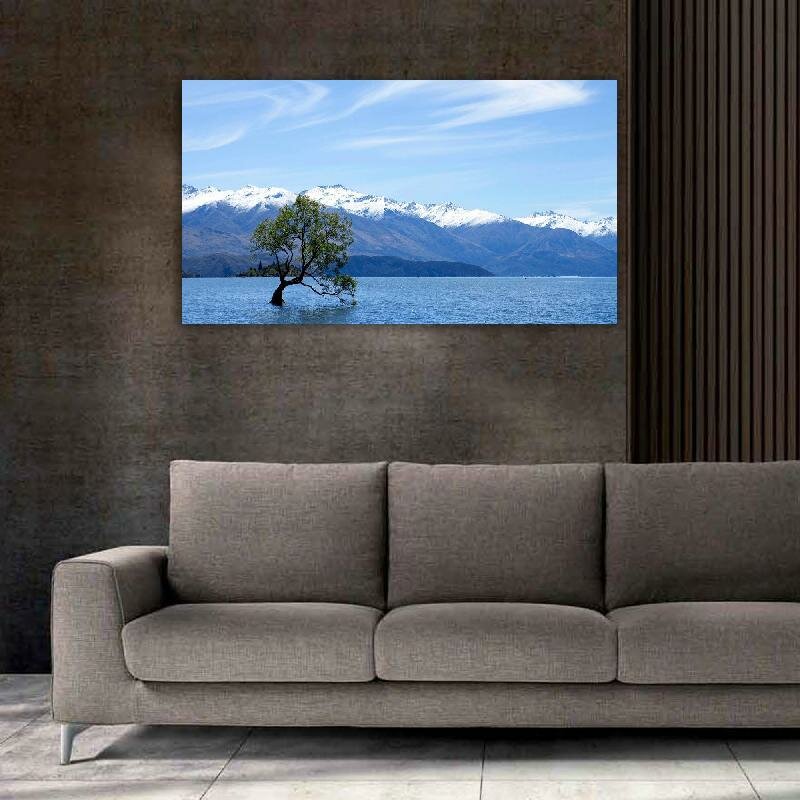 Картина на холсте 60x110 LinxOne "Дерево озеро горы" интерьерная для дома / на стену / на кухню / с подрамником интересное: