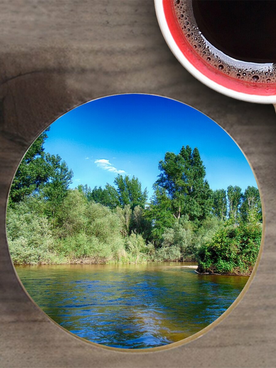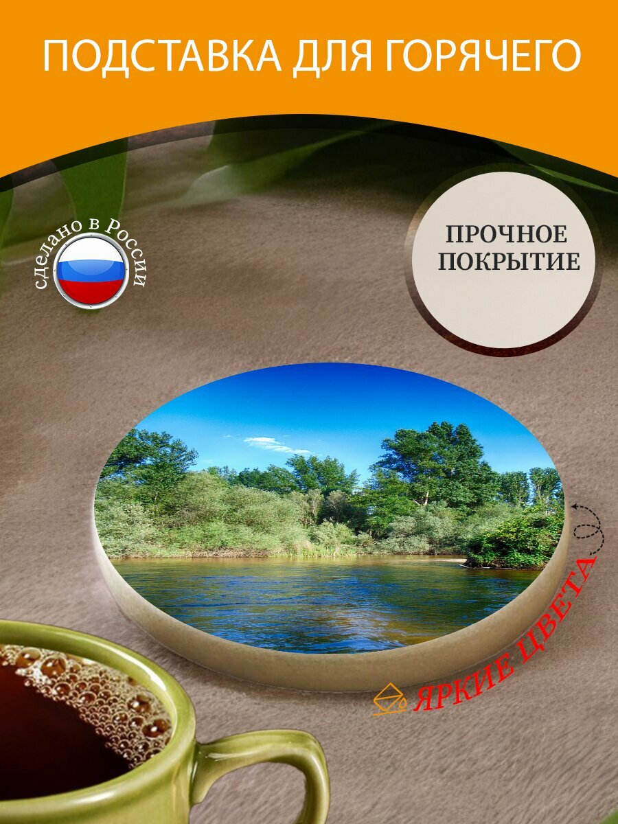 Подставка под горячее "Река, летом, природа" 10 см. из блого мрамора интересное: