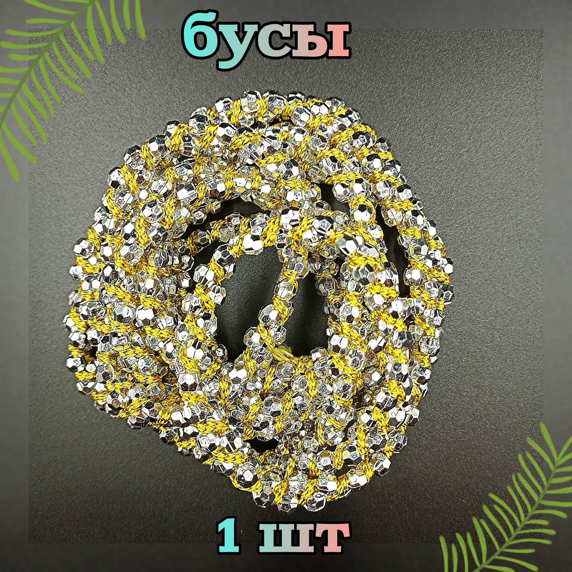 Елочное новогоднее украшение на елку , для декора дома и в подарок Новогодние бусы на елку/декор Золотая нить грани/длина 2,6 м интересное: