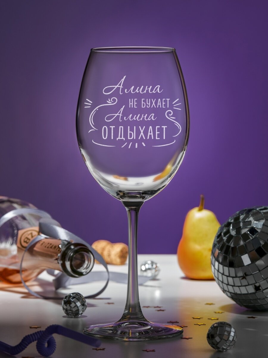 Бокал с гравировкой Алина не бухает интересное: