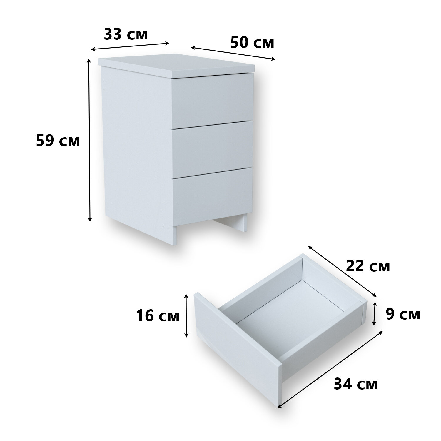 Тумба прикроватная, офисная с ящиками, тумба для спальни, на кухню и ванную белая domokomod 3 ящиками 33*50*58