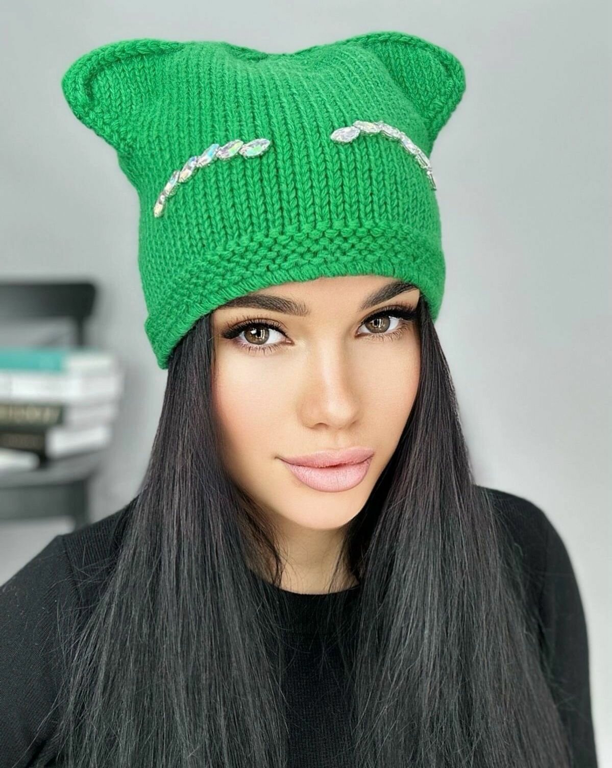 Шапка кошка /зеленый