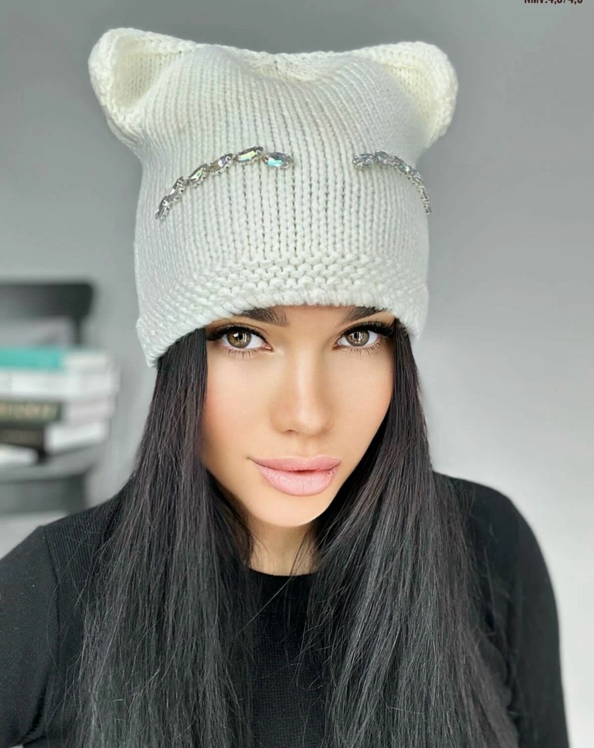 Шапка кошка /белый