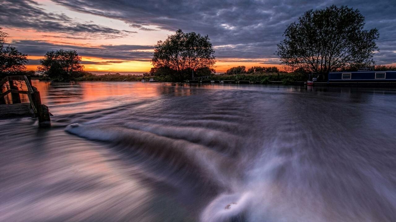 Купить Картина на холсте 60x110 LinxOne "Закат поток облака река" интерьерная для дома / на стену / на кухню / с подрамником