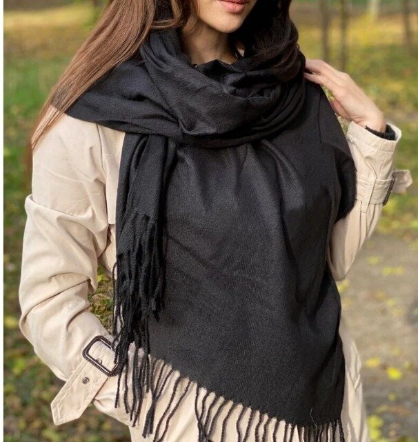 Палантин Drobe, вязаный, с бахромой, 200х70 см, черный интересное:
