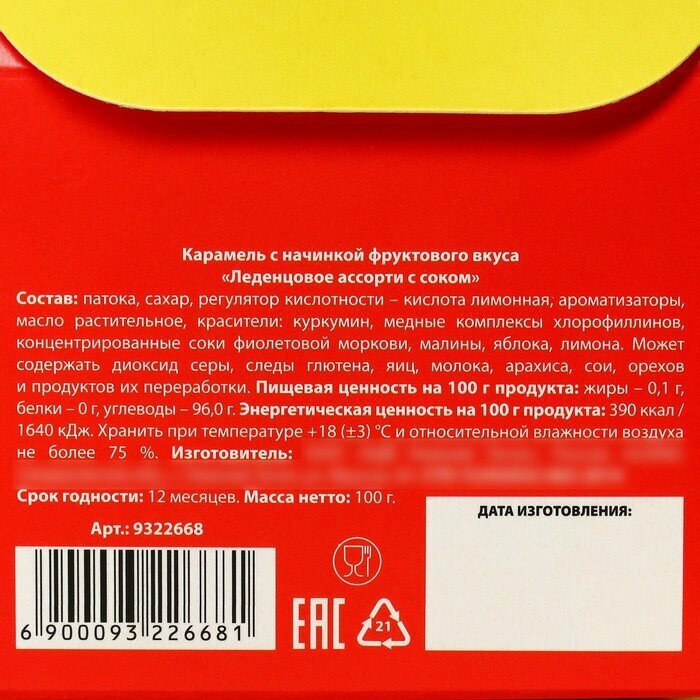 Леденцы «Счастье для тебя» с соком, вкус: ассорти, 100 г. интересное: