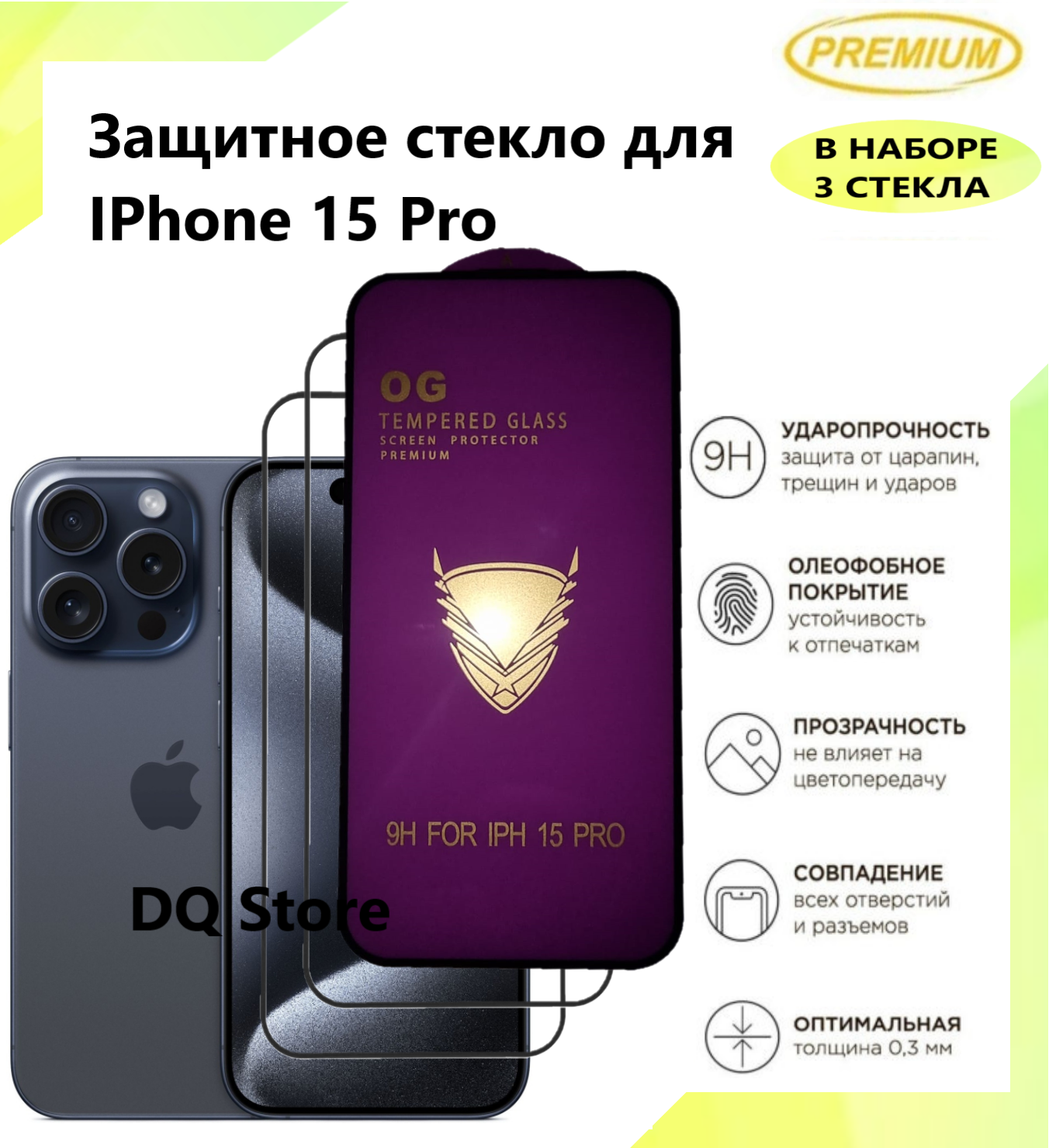 3 Защитных стекла на Apple iPhone 15 Pro / Эпл Айфон 15 Про . Полноэкранные защитные стекла с олеофобным покрытием Premium интересное: