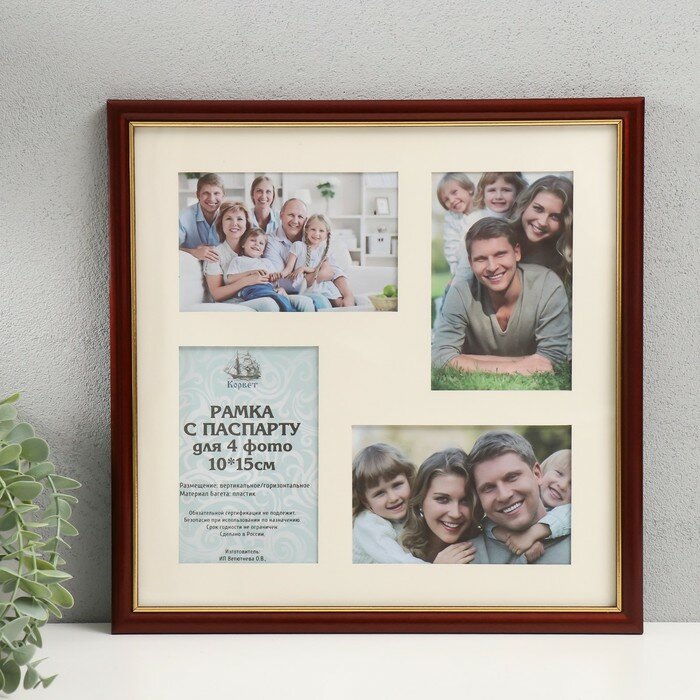 Корвет Фоторамка пластик 10х15 см, с паспарту, 4 фото, (пластиковый экран), коричневый интересное: