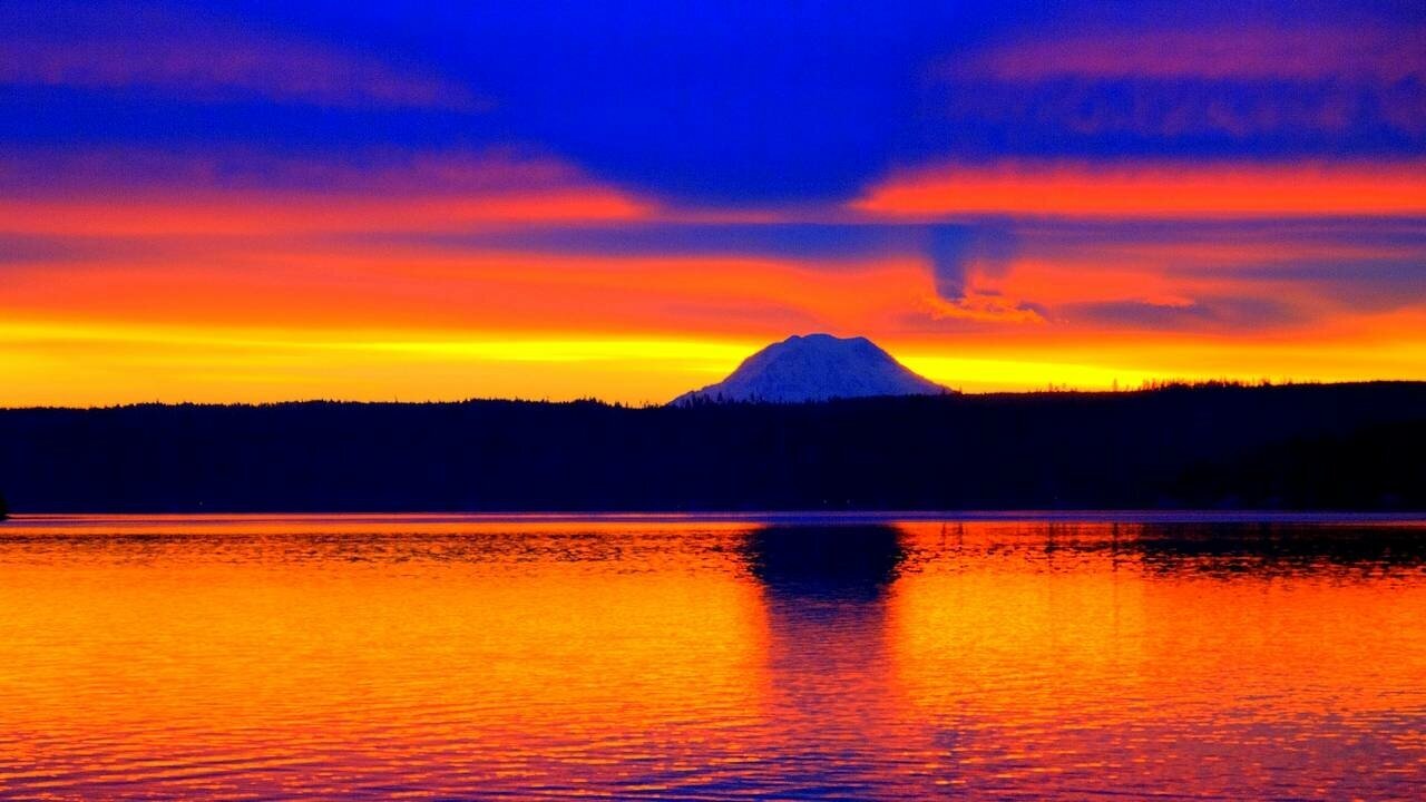 Картина на холсте 60x110 LinxOne "Небо гора облака закат озеро" интерьерная для дома / на стену / на кухню / с подрамником интересное: