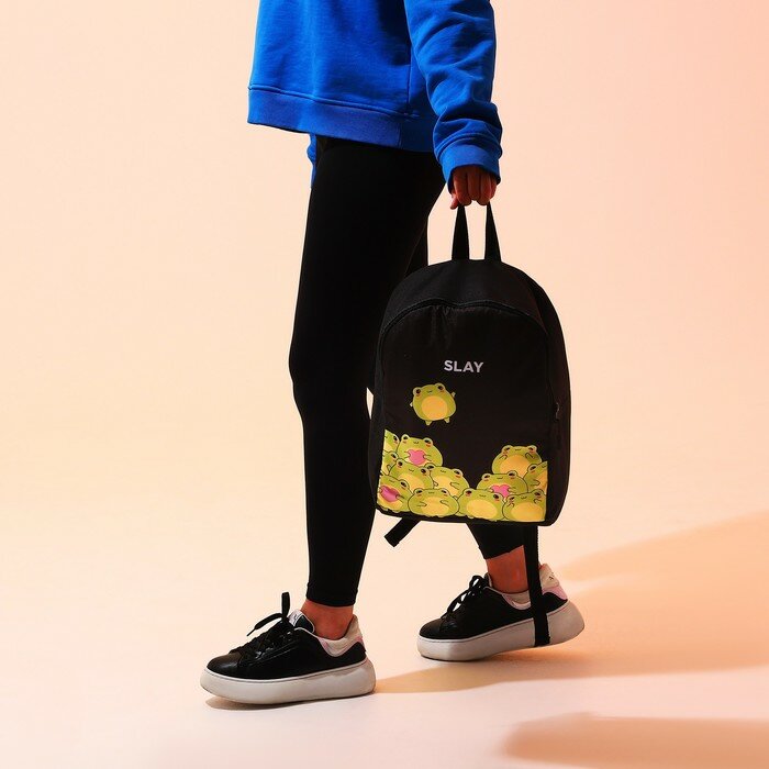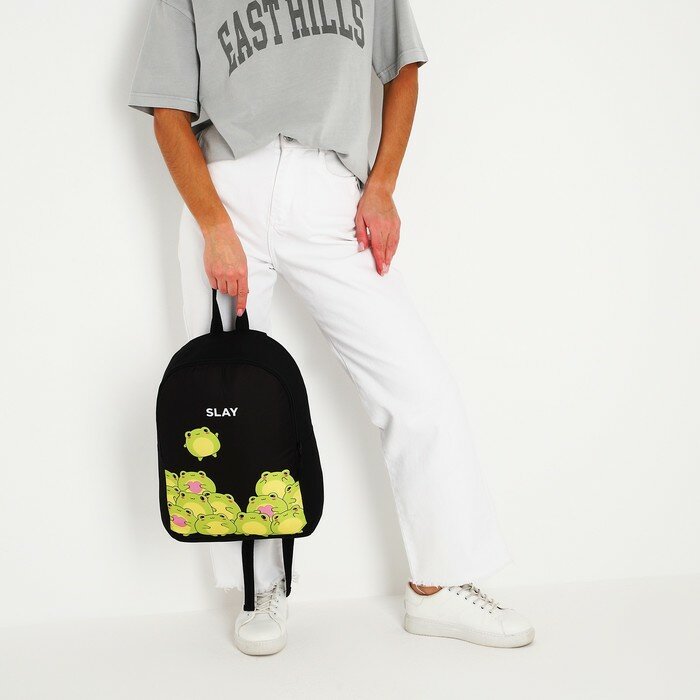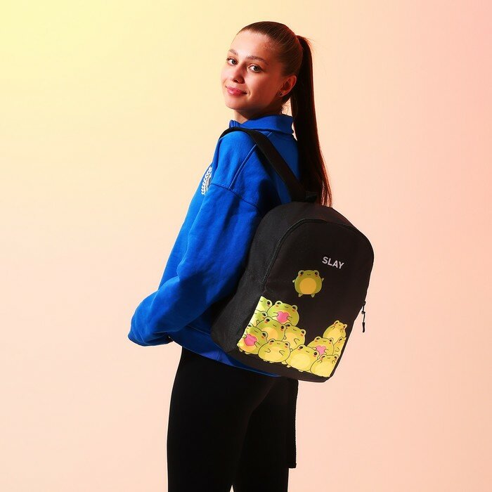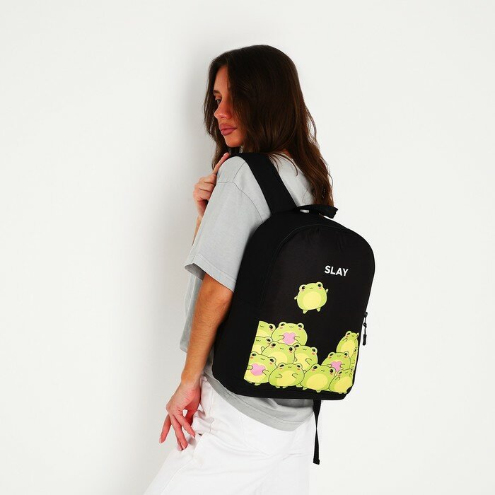 NAZAMOK Рюкзак текстильный Лягушки, 38х14х27 см, цвет чёрный интересное: