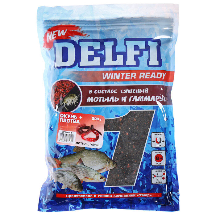 Делфи Прикормка зимняя увлажненная DELFI ICE Ready, окунь - плотва, мотыль/червь, 500 г интересное: