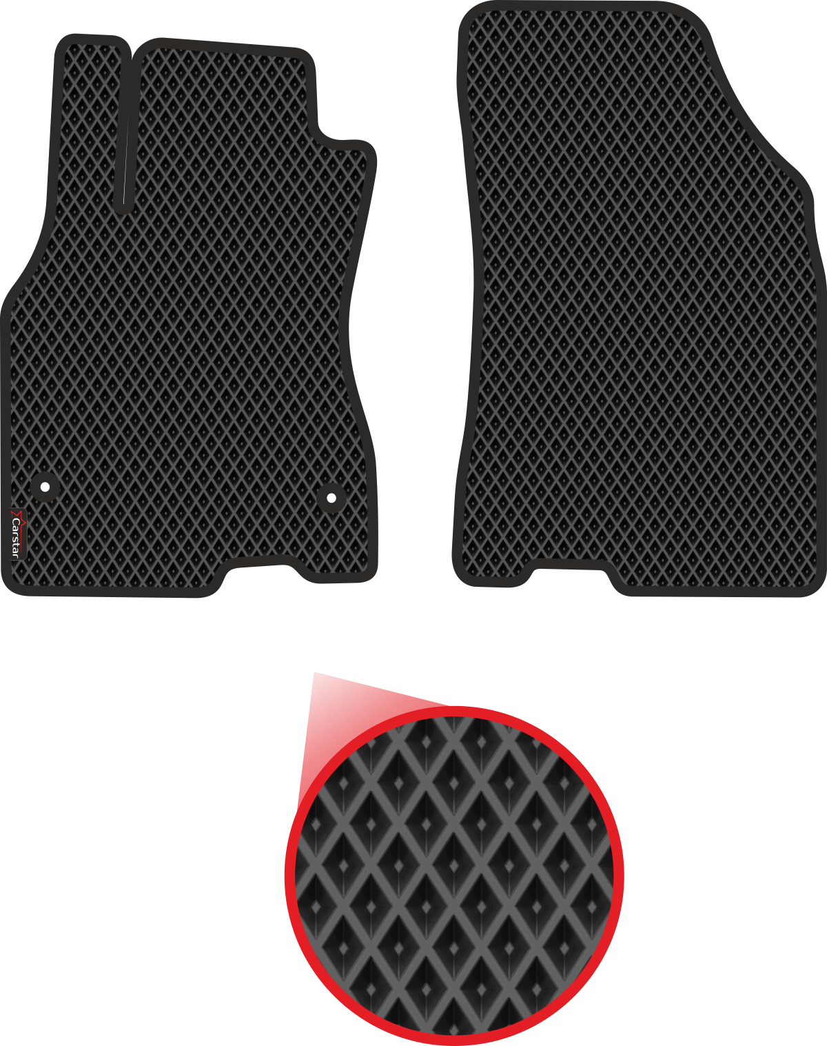 Передние коврики EVA для Renault Fluence I (2009-2017), чёрные с чёрным кантом, ячейка - ромб интересное: