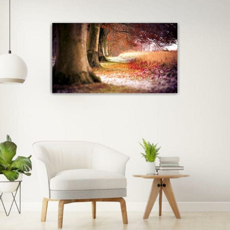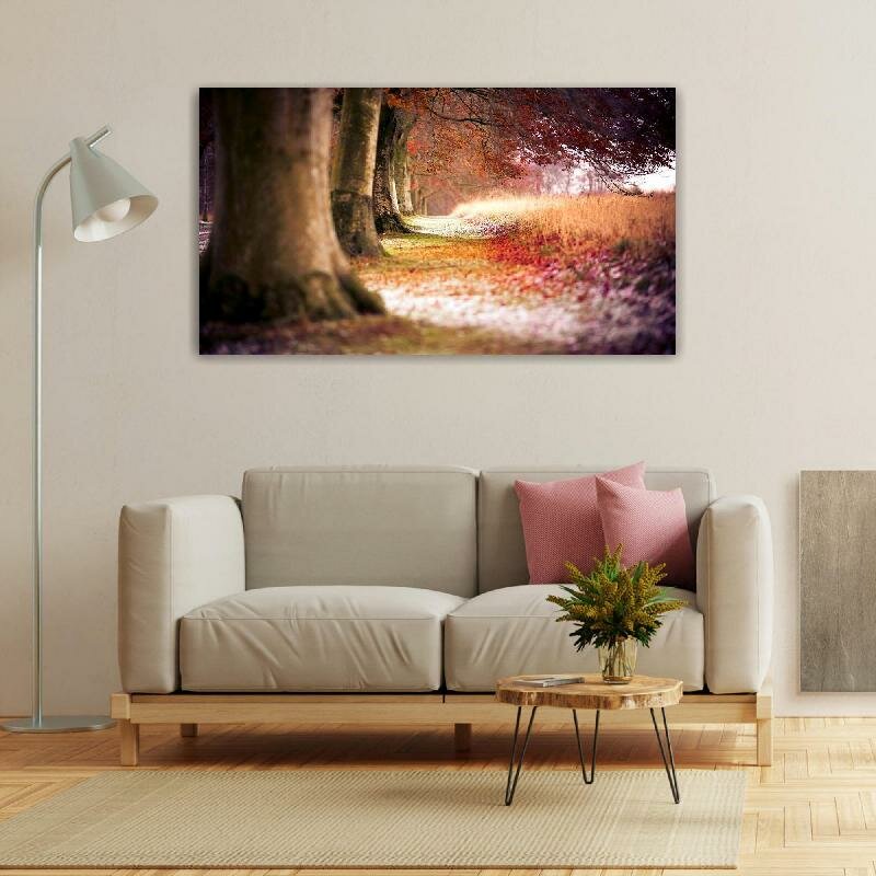 Картина на холсте 60x110 LinxOne "Деревья осень лес path" интерьерная для дома / на стену / на кухню / с подрамником интересное:
