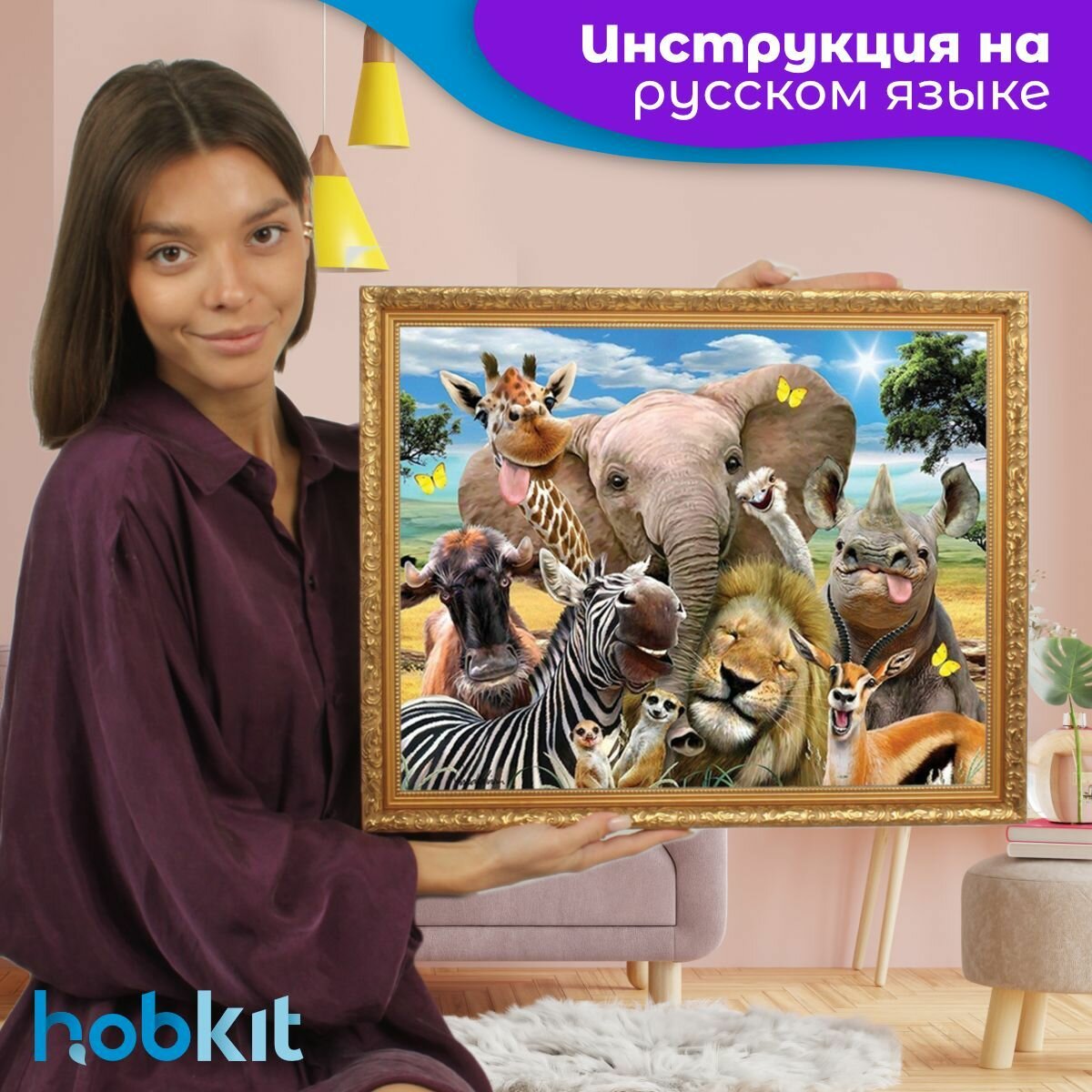 Алмазная мозаика HOBKIT "Веселый зоопарк 40х50 " 50х40 размер холста, интересное: