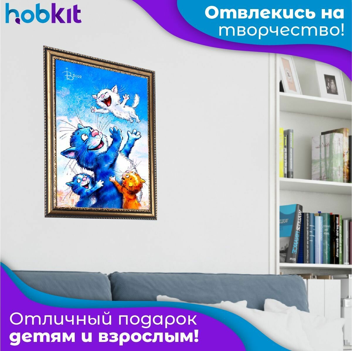 Алмазная мозаика полная выкладка HOBKIT "Семейка котов 40х50+Багет золотой " 50х40 размер холста, интересное: