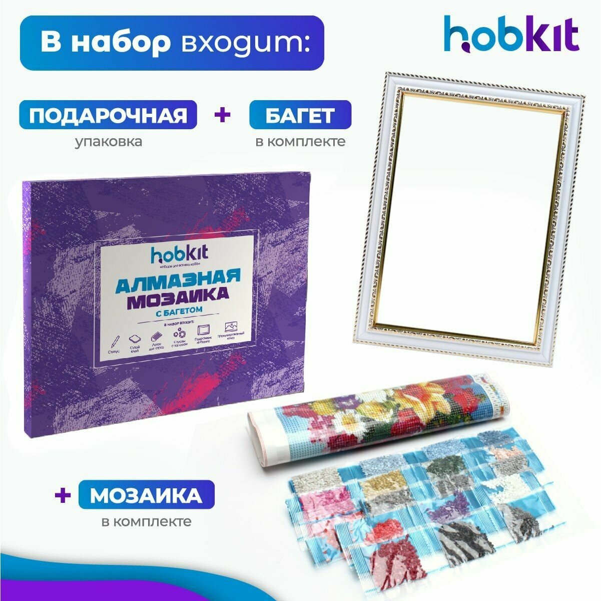 Алмазная мозаика полная выкладка HOBKIT "Букет с книгой 40х50+Багет белый " 50х40 размер холста, интересное: