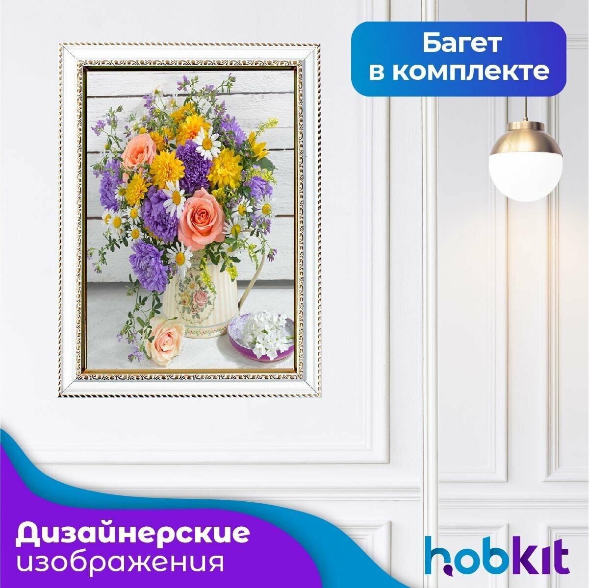 Купить Алмазная мозаика полная выкладка HOBKIT "Красивый букет-2 40х50+Багет белый " 50х40 размер холста,