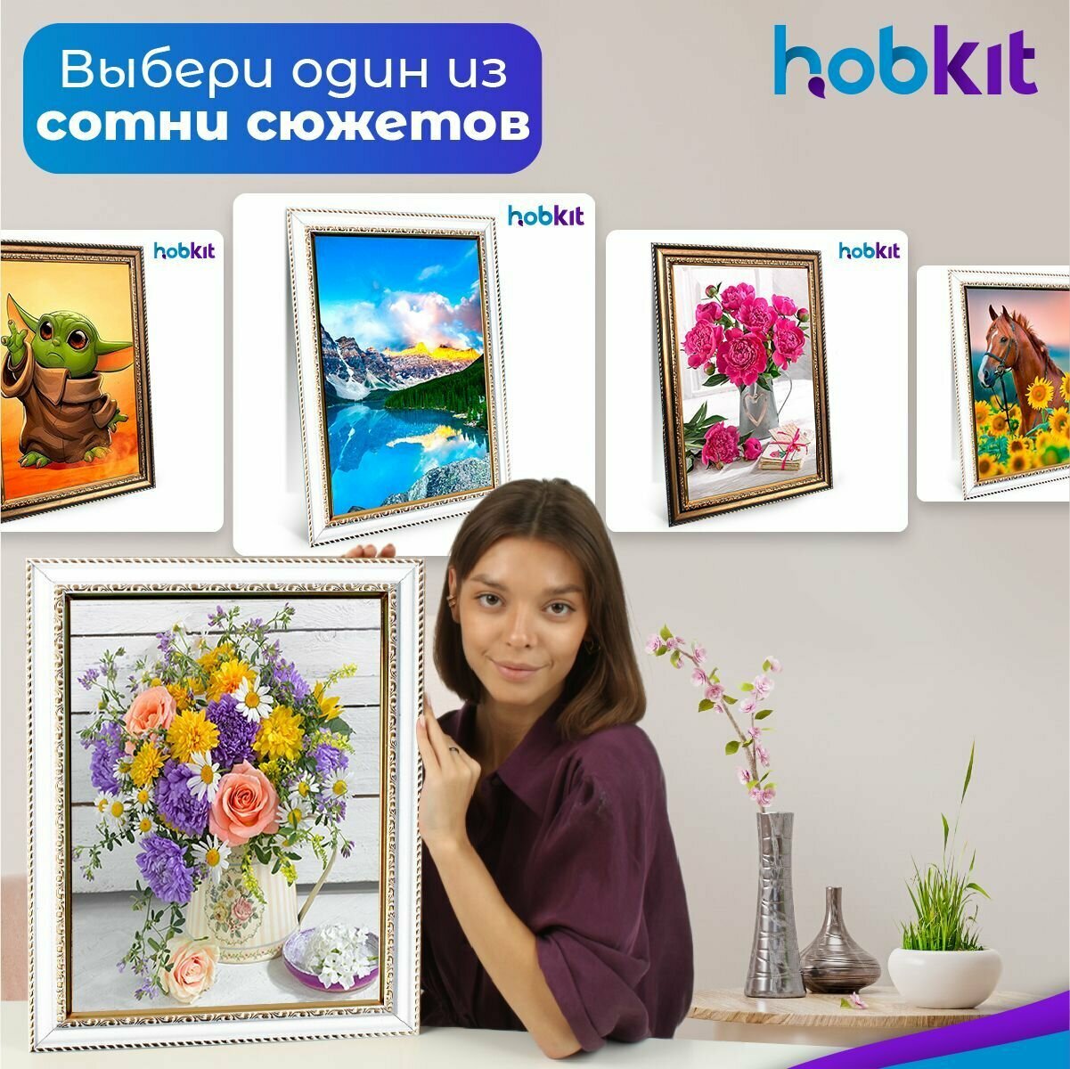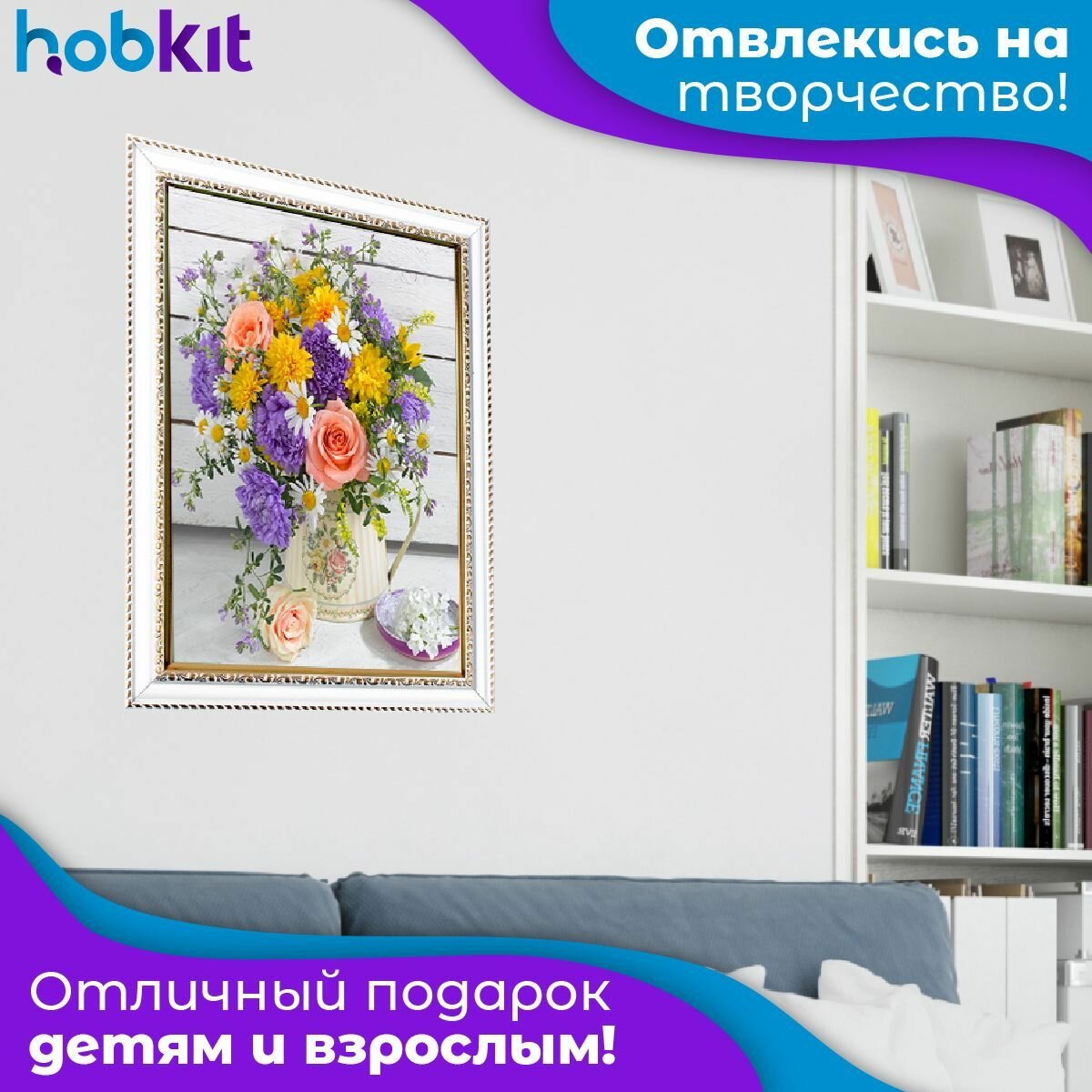 Алмазная мозаика полная выкладка HOBKIT "Красивый букет-2 40х50+Багет белый " 50х40 размер холста, интересное: