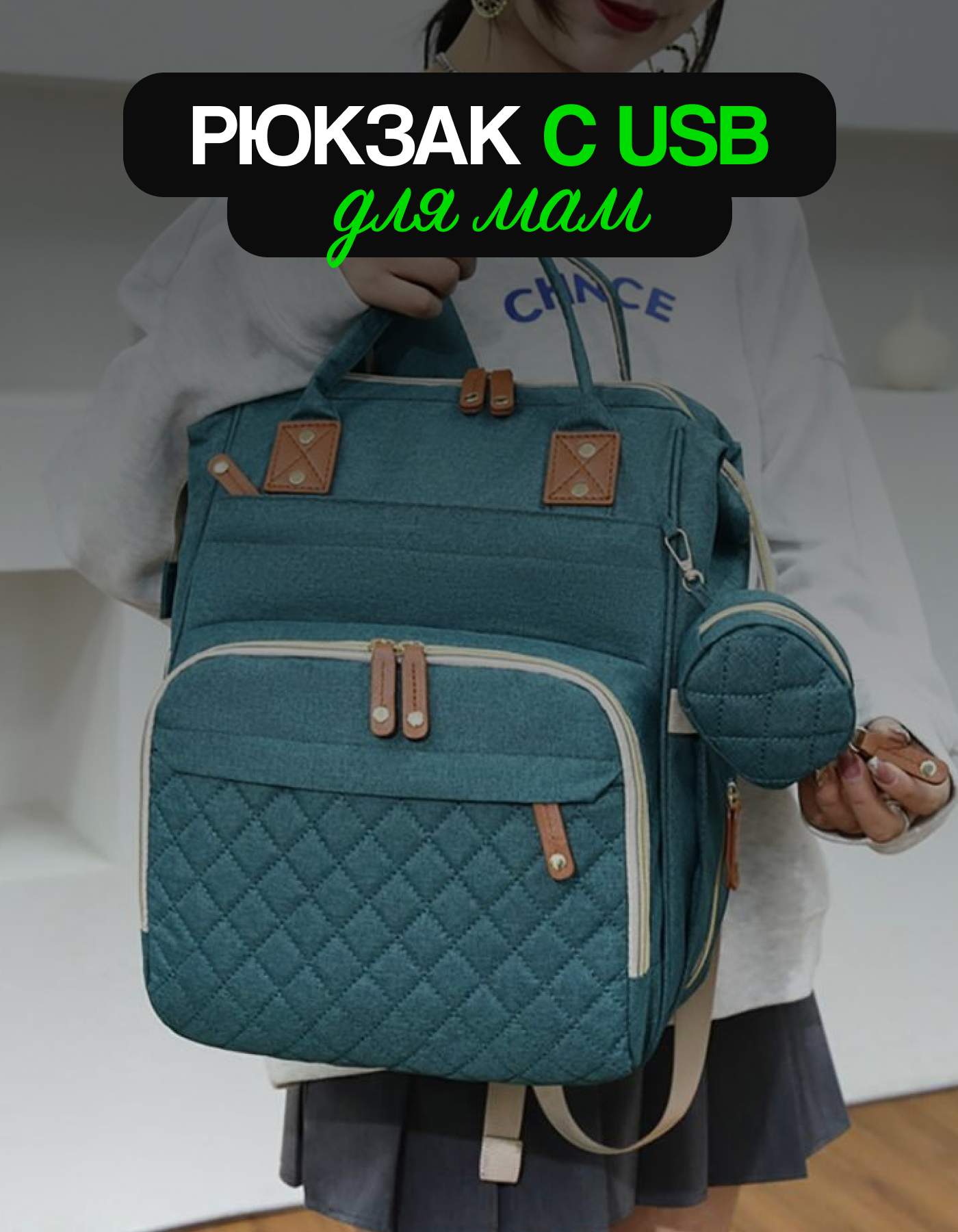 Рюкзак для мамы и малыша с USB, сумка на коляску, цвет зеленый интересное: