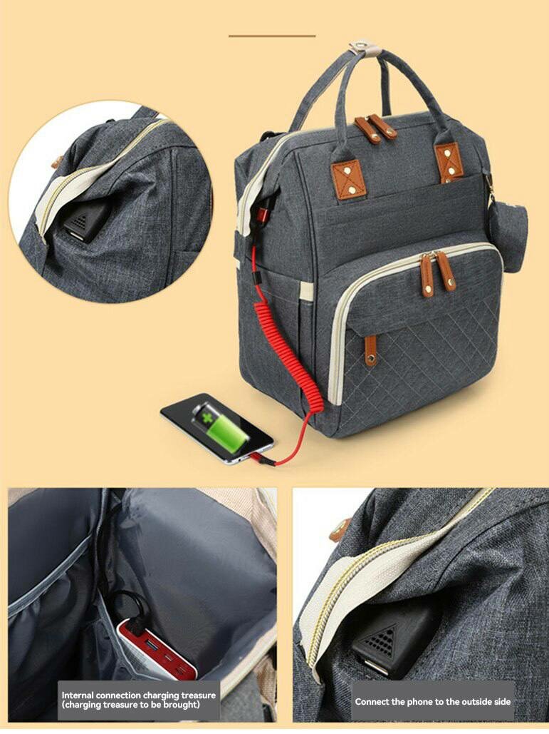 Рюкзак для мамы и малыша с USB, сумка на коляску, цвет светло-серый