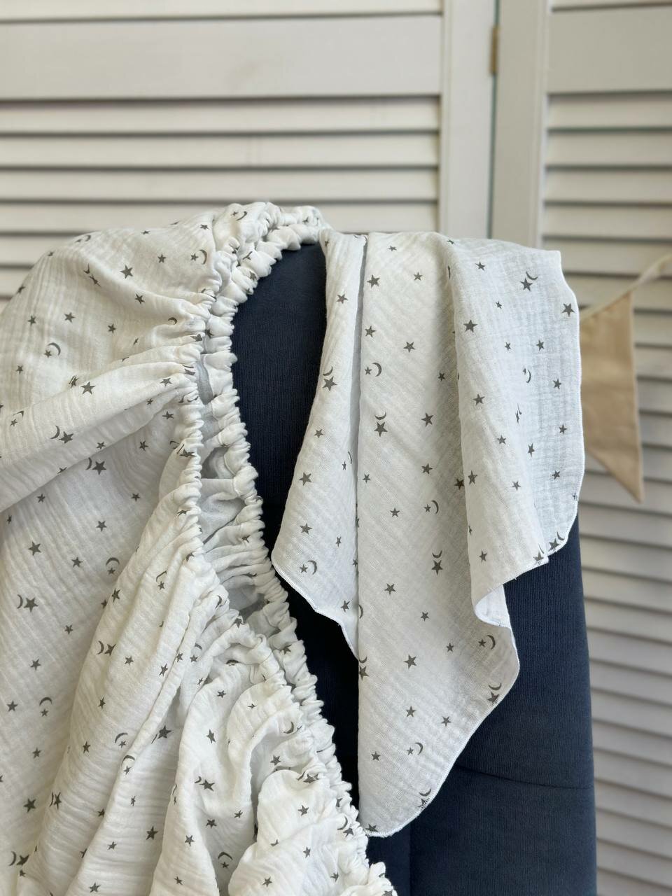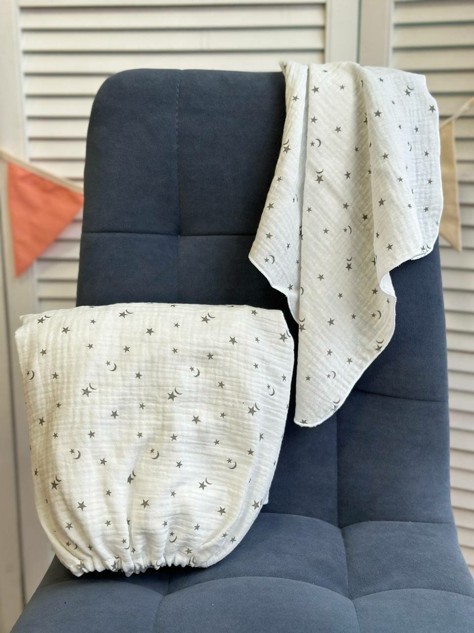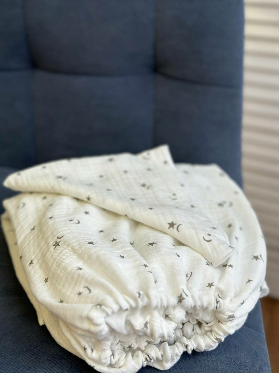 Простынь на резинке 120х60 муслиновая, звезды луны интересное: