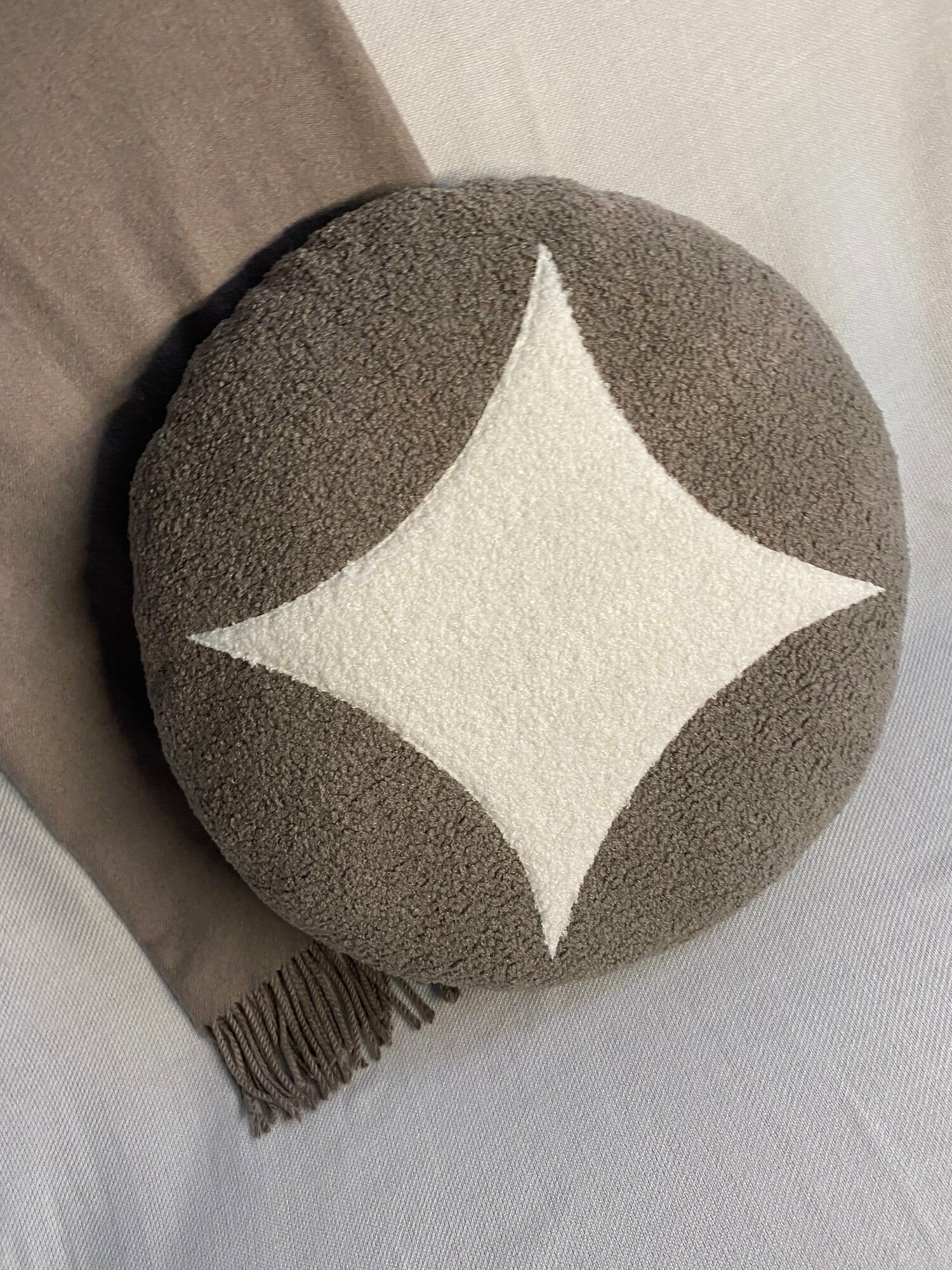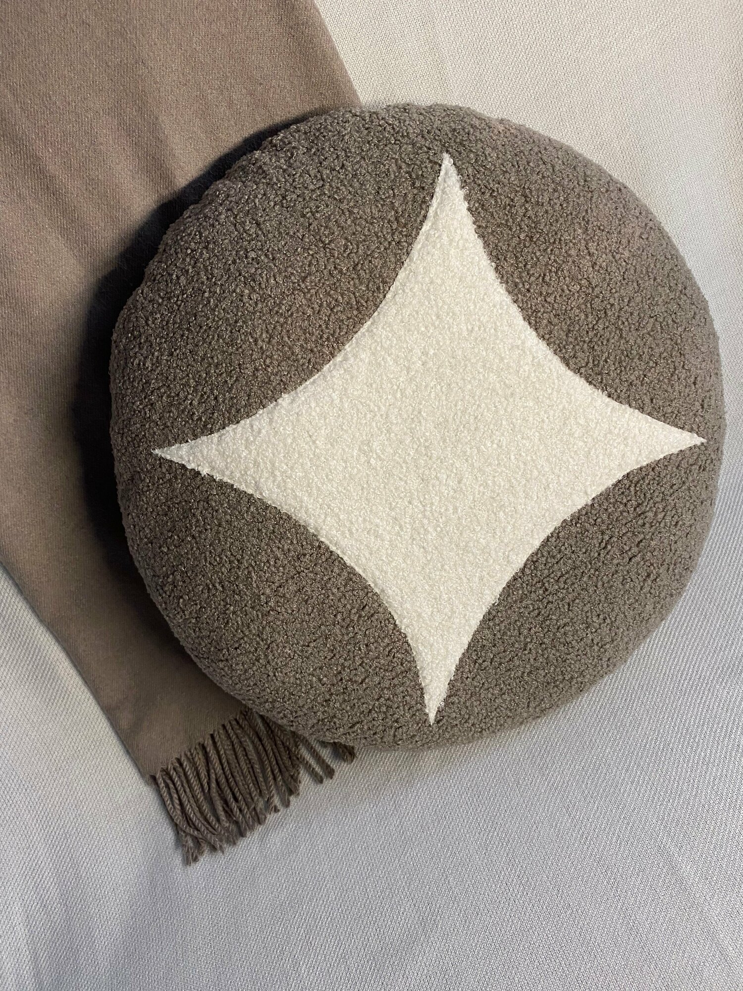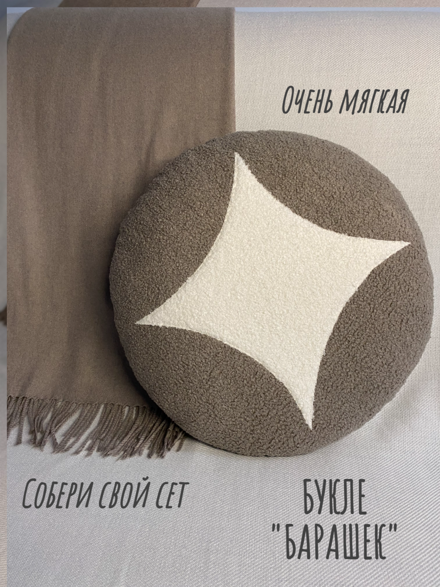 Подушка декоративная круглая, основной цвет какао 45х45 интересное: