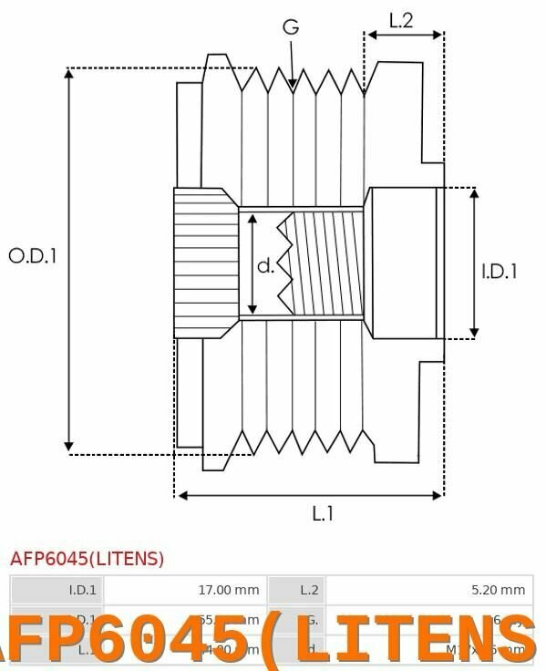 AS AFP6045LITENS Шкив генератора LITENS
