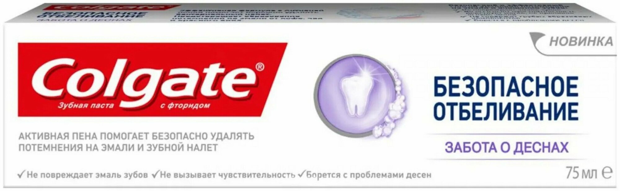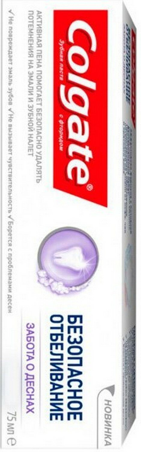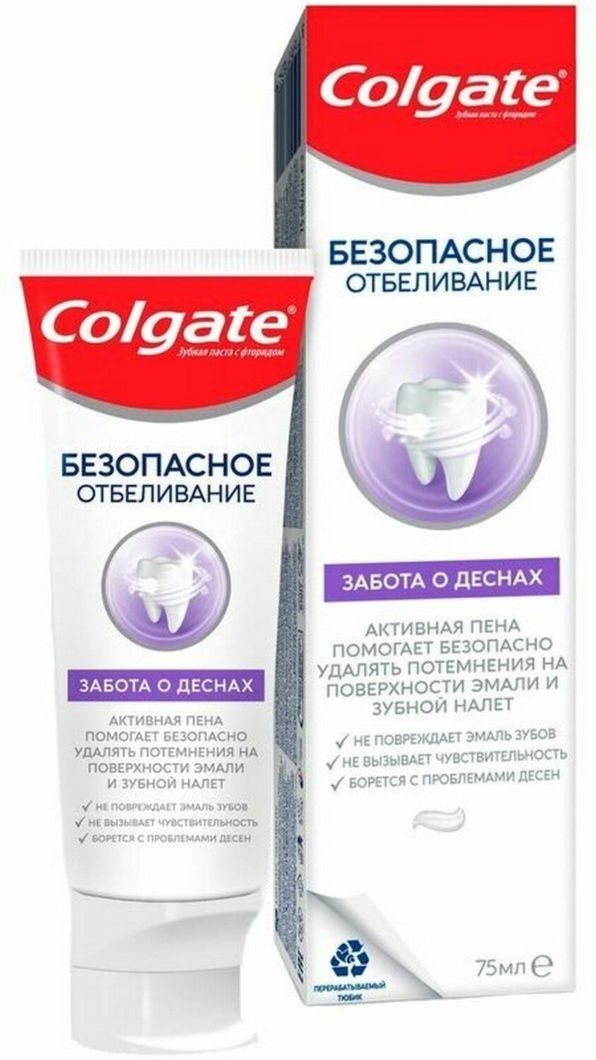 COLGATE Безопасное отбеливание Забота о деснах отбеливающая зубная паста, 75 мл