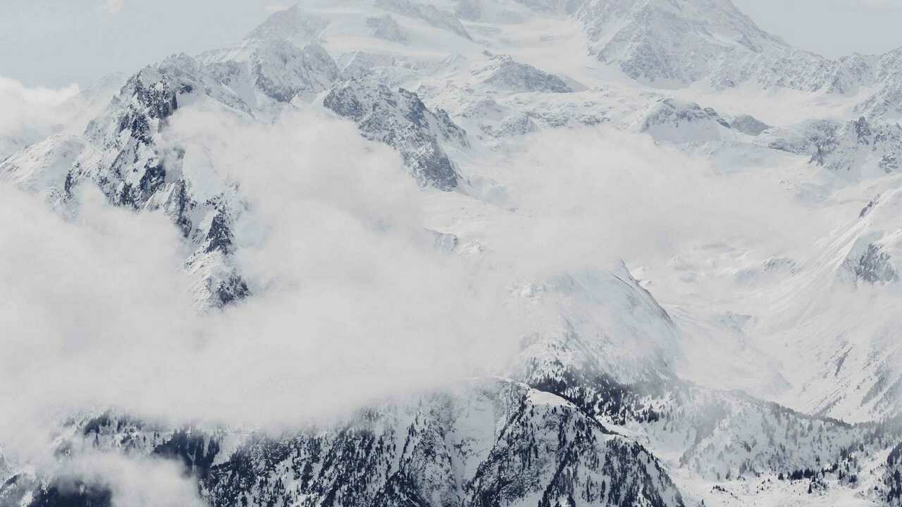 Картина на холсте 60x110 LinxOne "Гора, заснеженный, вершина, туман, облака, белый" интерьерная для дома / на стену / на кухню / с подрамником интересное:
