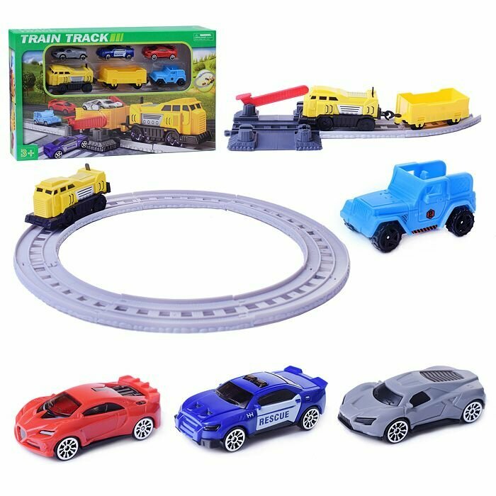 Железная дорога Oubaoloon "Электропоезд", поезд с прицепом, 3 машинки, в коробке (888-2) интересное: