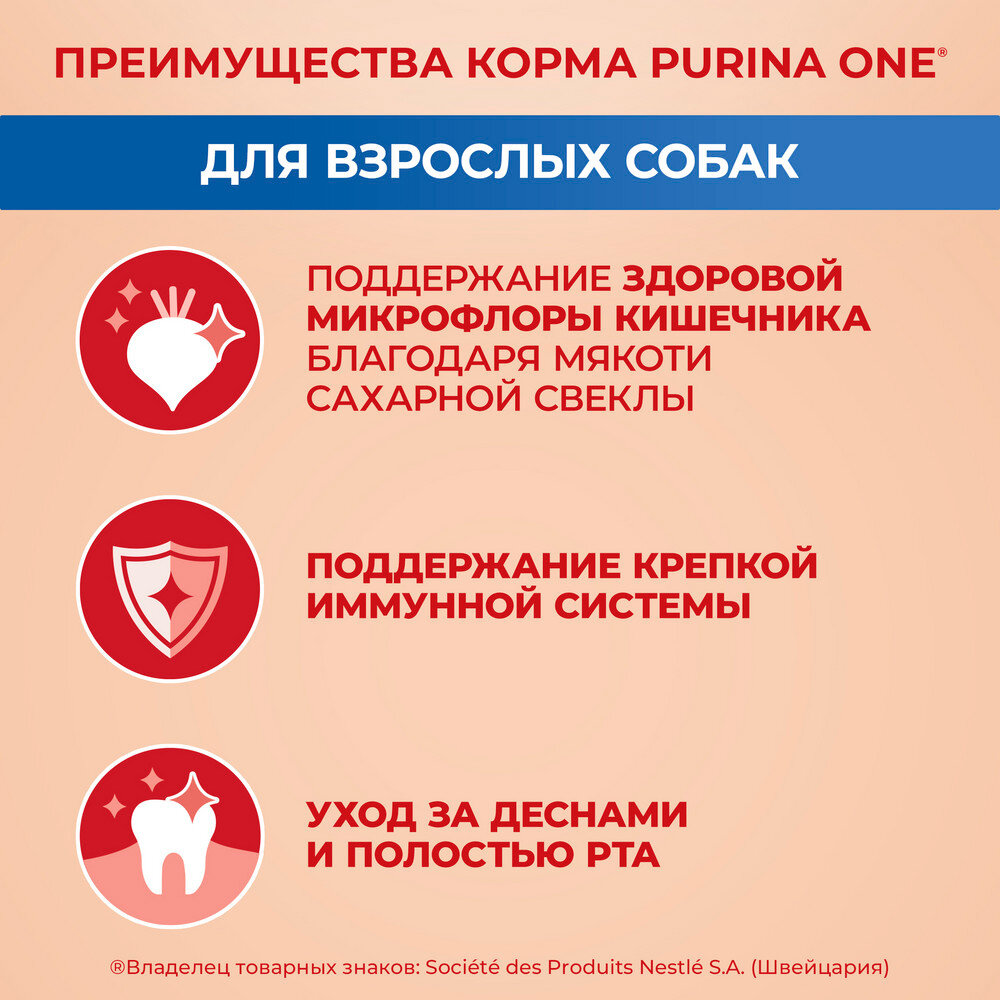 PURINA ONE мини взрослая для взрослых собак маленьких пород с говядиной и рисом (1,5 кг)