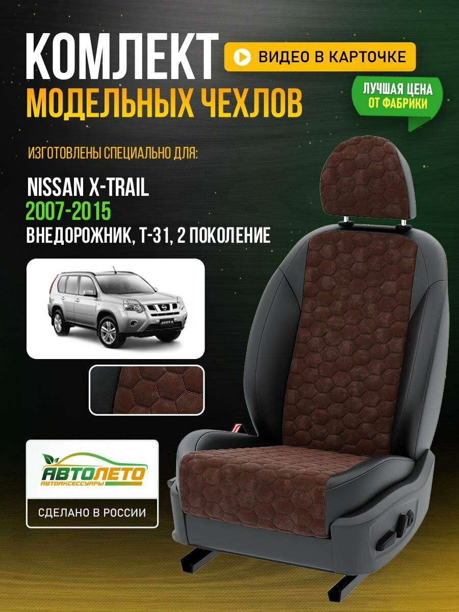 Чехлы для Nissan X-trail 2 T-31 2001-2019 Шоколадный Черный Алькантара соты Авто Лето LA452C28 интересное:
