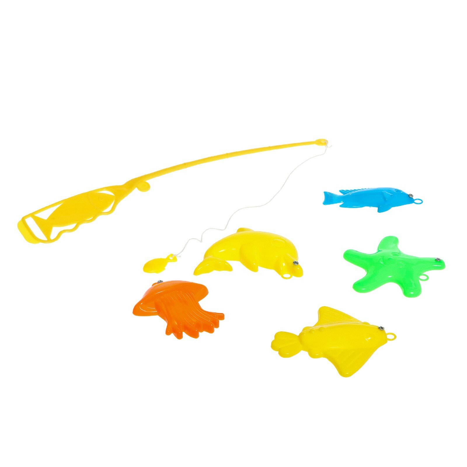 Купить Рыбалка магнитная "Яркие рыбки" 1 удочка, 5 рыбок микс