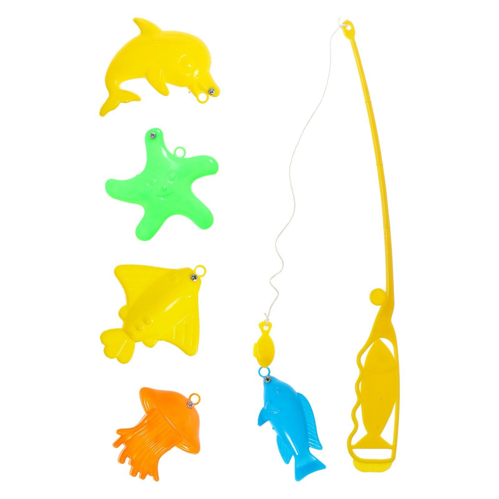 Рыбалка магнитная "Яркие рыбки" 1 удочка, 5 рыбок микс интересное: