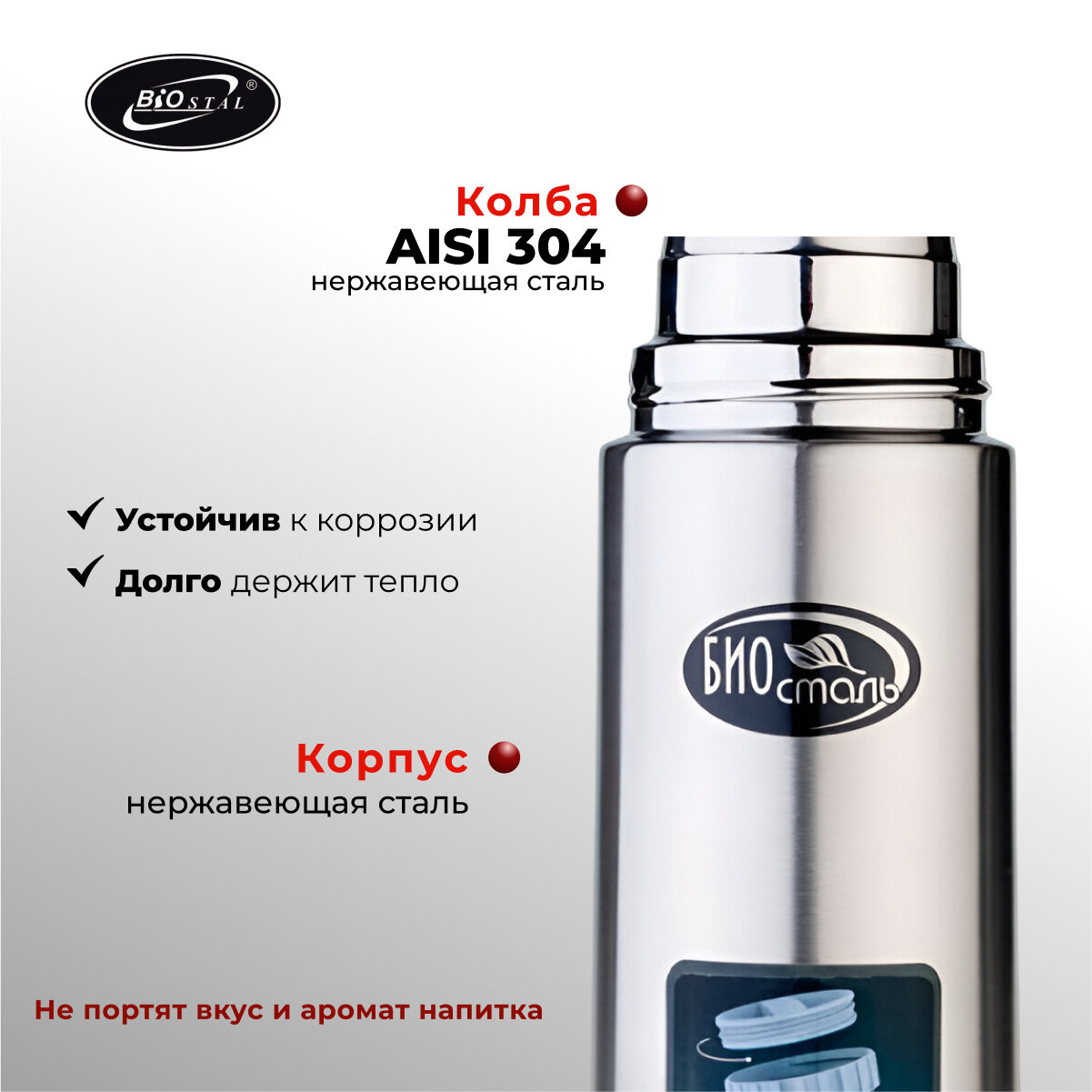 СохранитьТермос классический Вакуумный с узкой горловиной, пробка-контейнер с ситичком Биосталь/Biostal (1),NB-1000Z интересное: