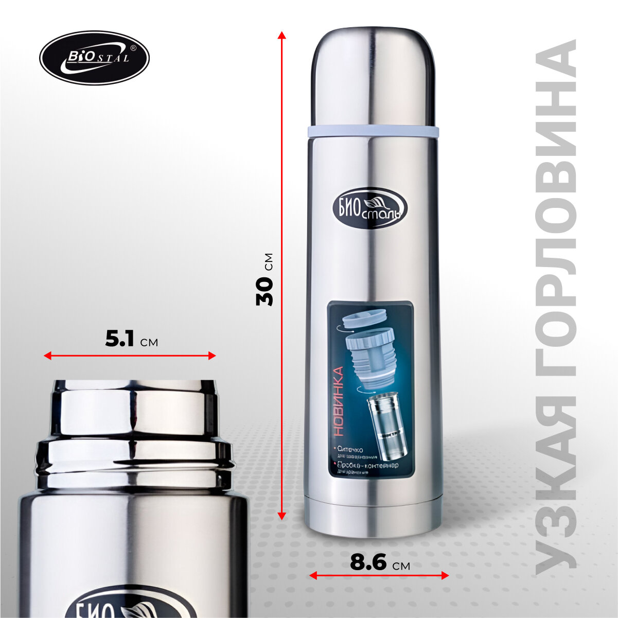 Купить Термос классический Вакуумный с узкой горловиной, пробка-контейнер с ситичком Биосталь/Biostal (1),NB-1000Z