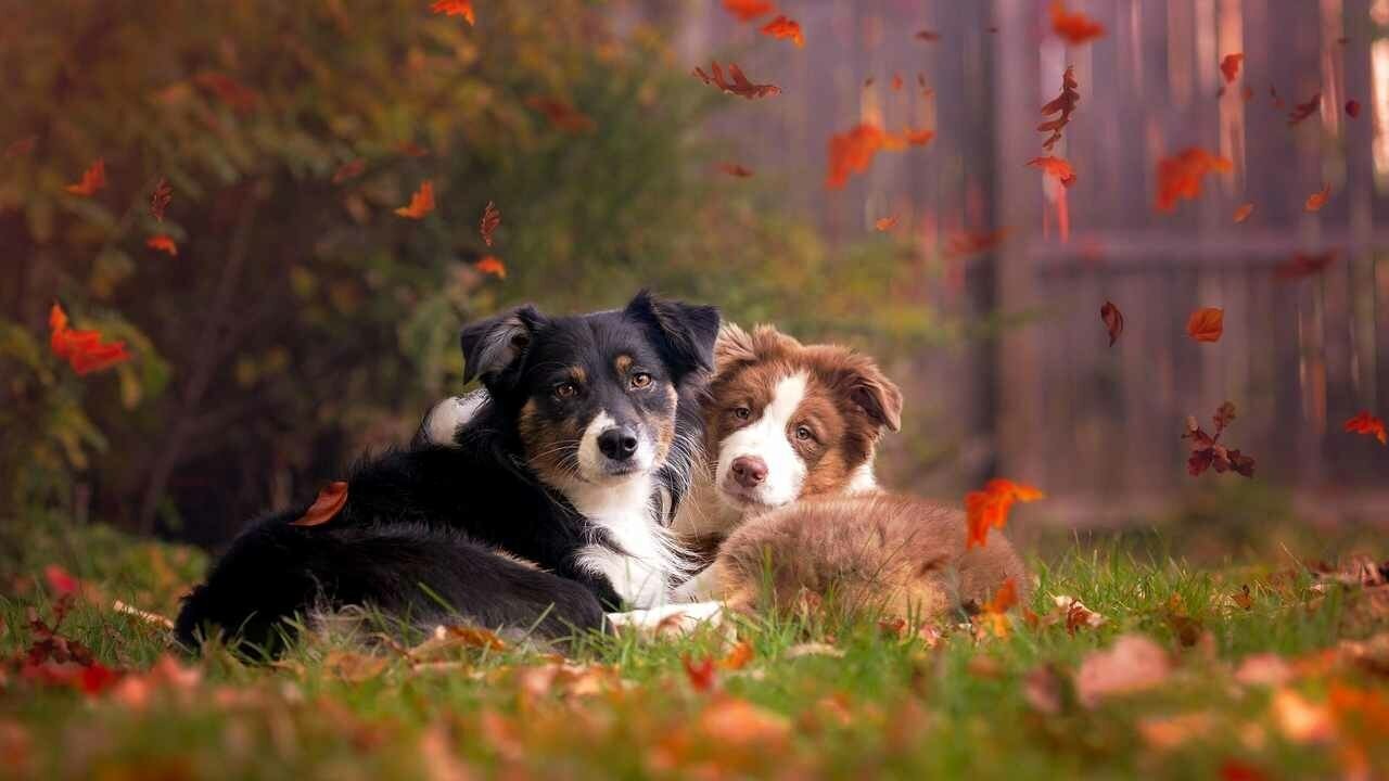 Картина на холсте 60x110 LinxOne "Осень собаки природа" интерьерная для дома / на стену / на кухню / с подрамником интересное: