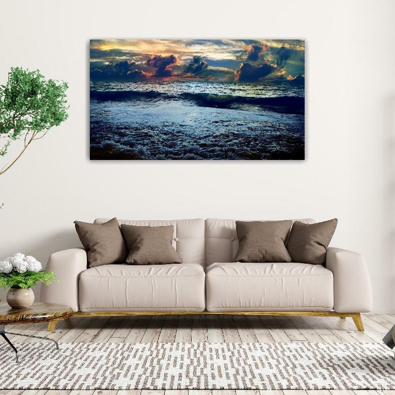 Картина на холсте 60x110 LinxOne "Волна закат море облака" интерьерная для дома / на стену / на кухню / с подрамником интересное: