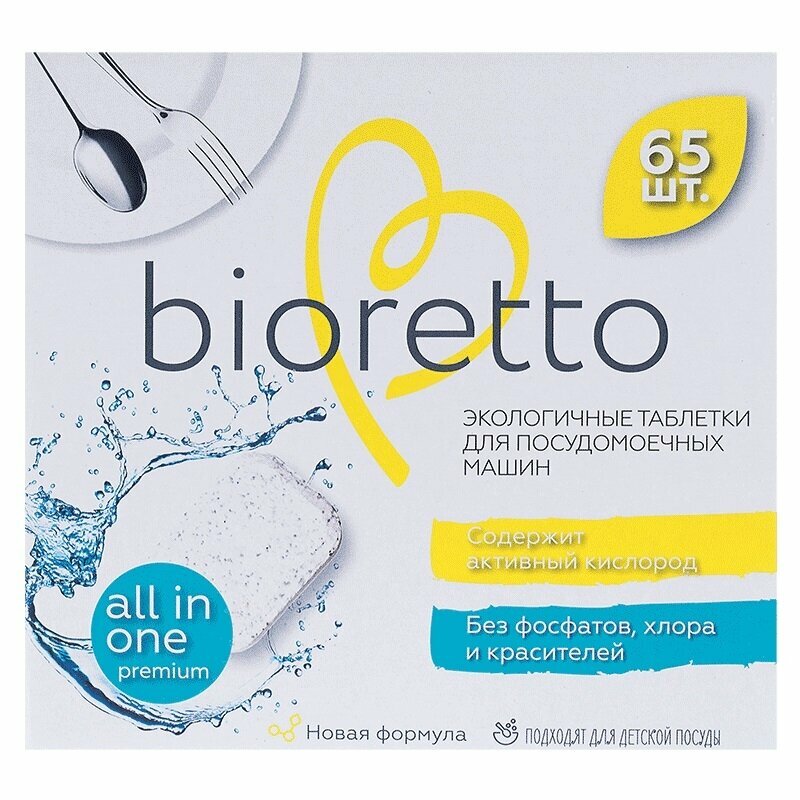 Таблетки для посудомоечных машин bioretto «All in One Premium», 65 штук
