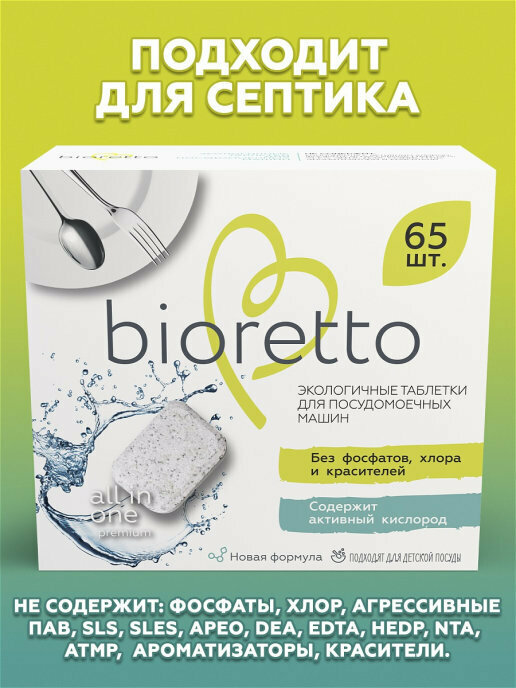 bioretto Экологичные таблетки для посудомоечных машин (65 шт.)