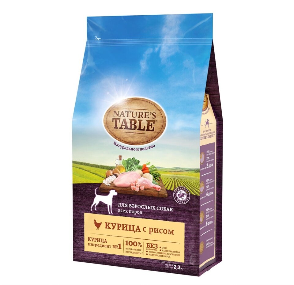 Nature`s Table корм для взрослых собак всех пород, курица и рис 2,3 кг