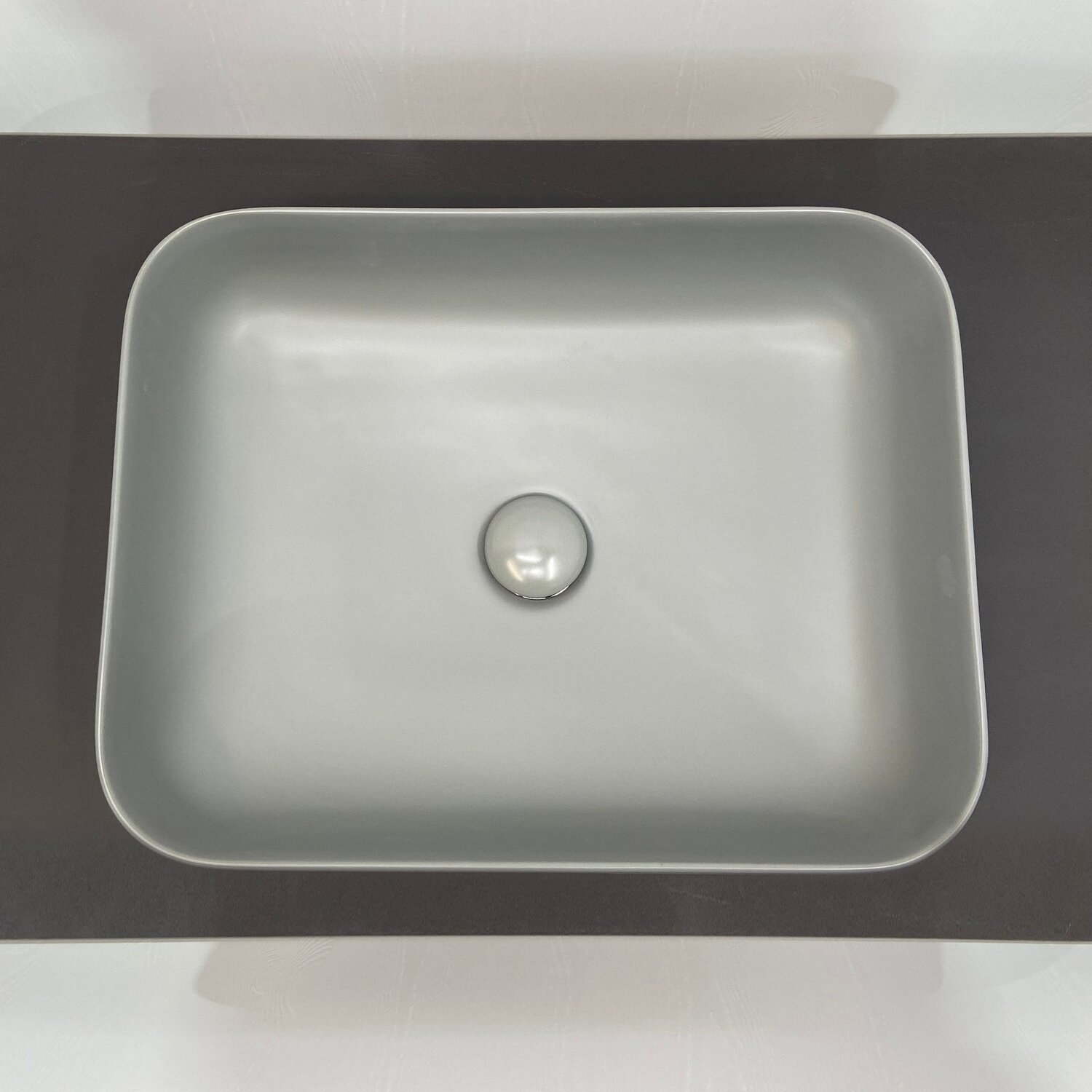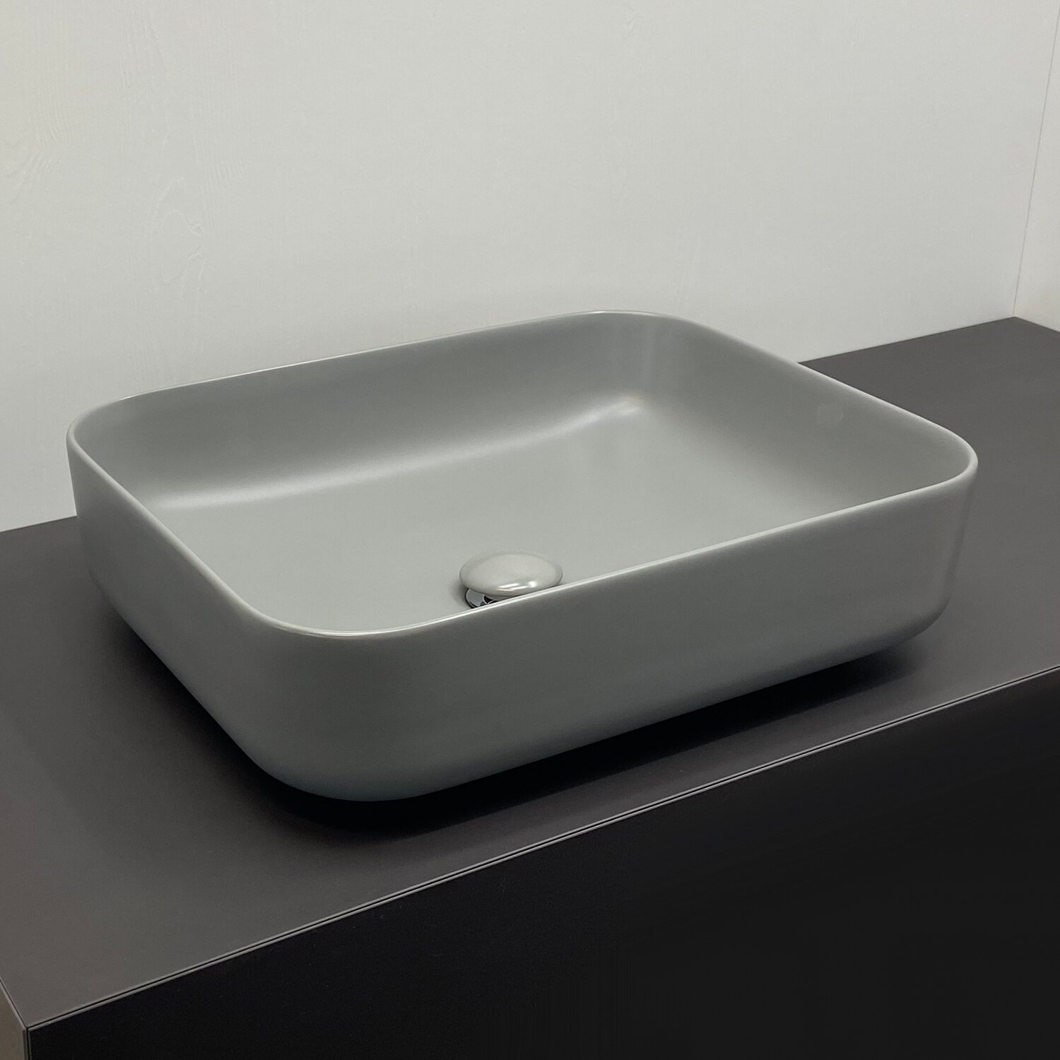 Купить Раковина Comforty 50x39 см, накладная, прямоугольная, светло-серая, матовая, фарфор