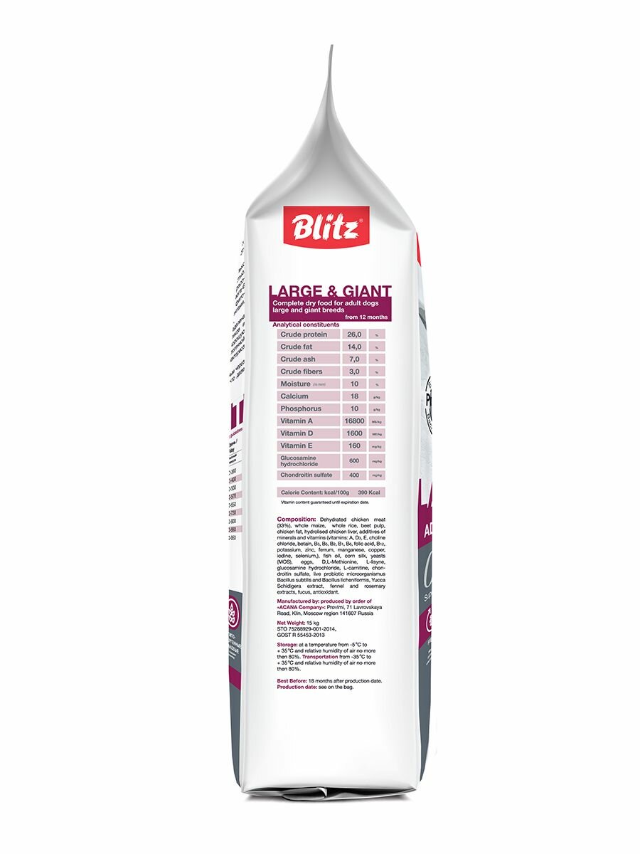 Блитц корм д/собак крупных ADULT LARGE&GIANT BREEDS 15 кг, шт