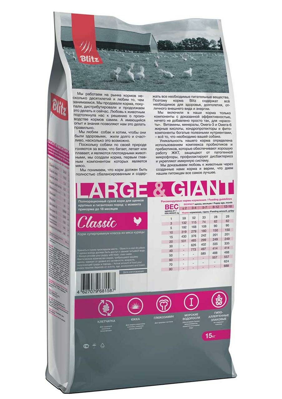 Корм Blitz Classic Puppy Large & Giant для щенков крупных пород, 15 кг