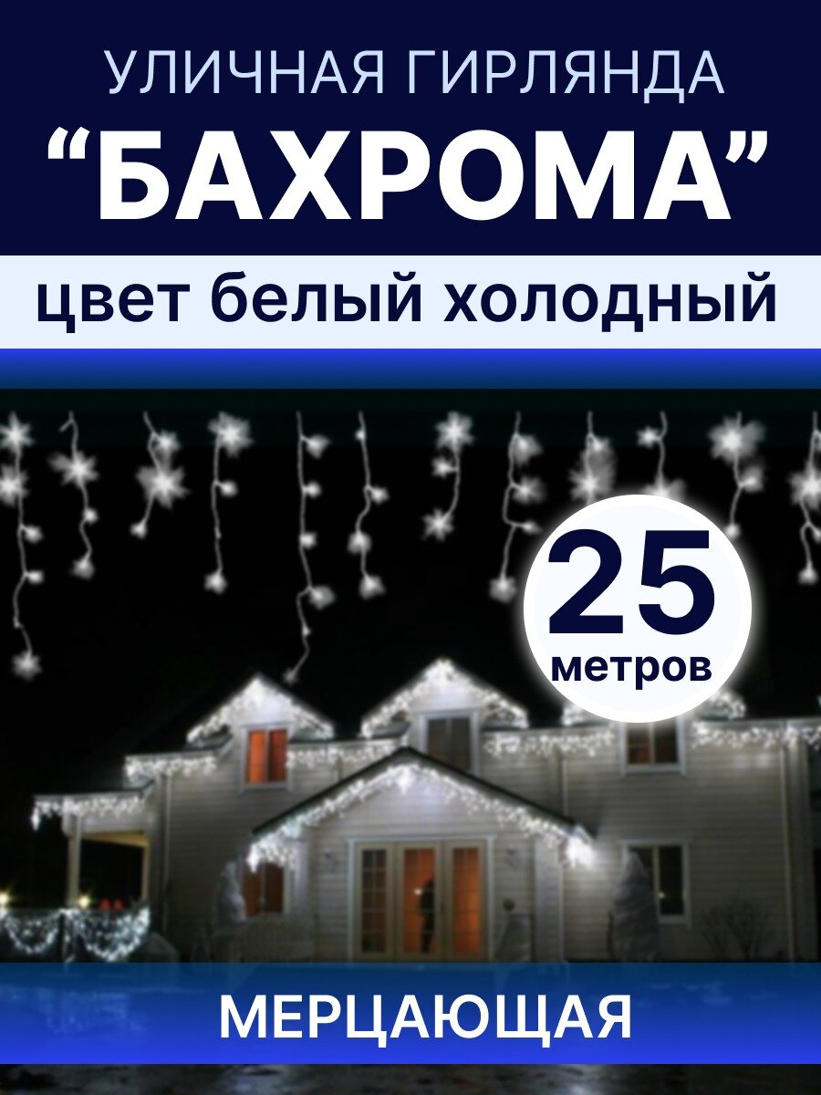 Гирлянда-бахрома уличная 1000 диодов 25м холодная белая интересное:
