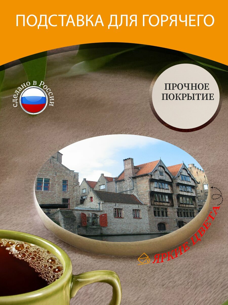 Подставка под горячее "Брюгге, бельгия, канал" 10 см. из блого мрамора интересное: