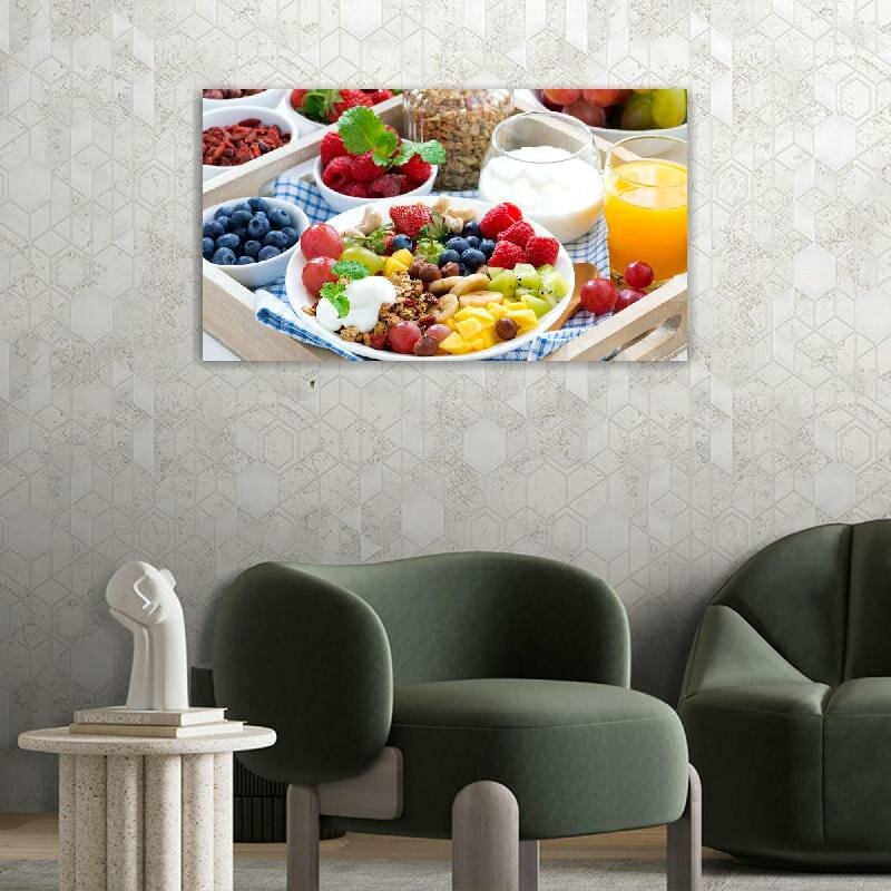 Купить Картина на холсте 60x110 LinxOne "Мята голубика киви изобилие" интерьерная для дома / на стену / на кухню / с подрамником