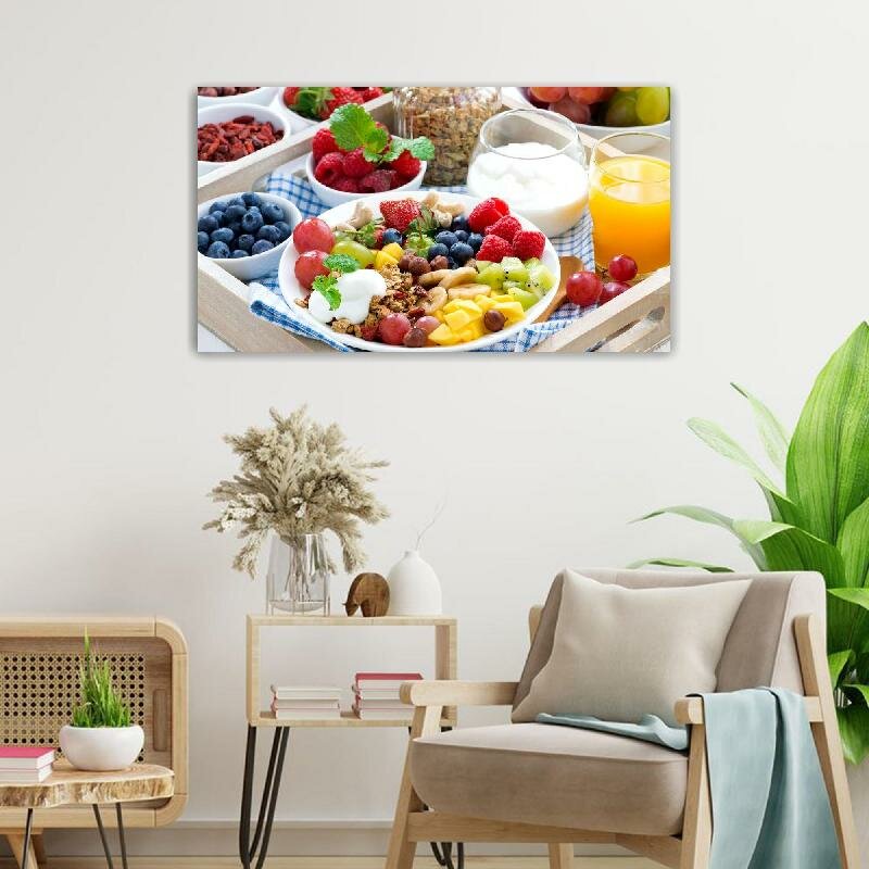 Картина на холсте 60x110 LinxOne "Мята голубика киви изобилие" интерьерная для дома / на стену / на кухню / с подрамником интересное:
